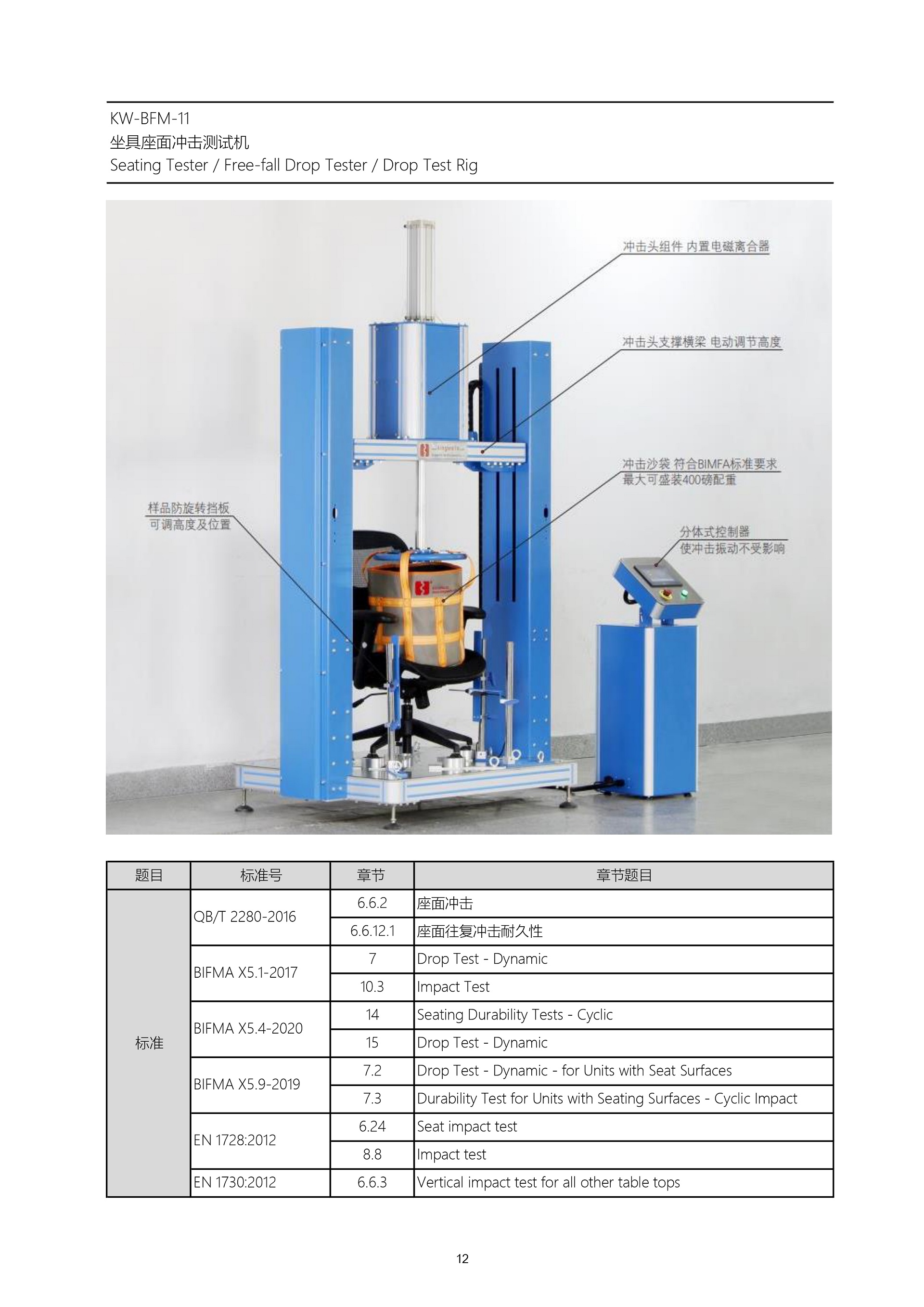 KW-BFM-11 坐具座面沖擊測試機